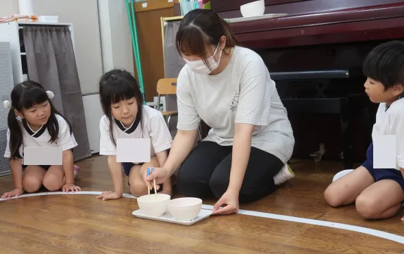 モンテッソーリの教具を使い、